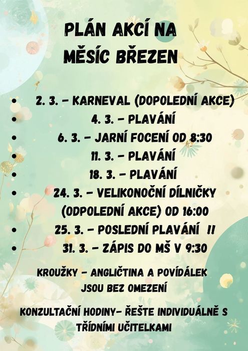 Úvod > Mateřská škola > Aktuality MŠ > Plán akcí na měsíc březen