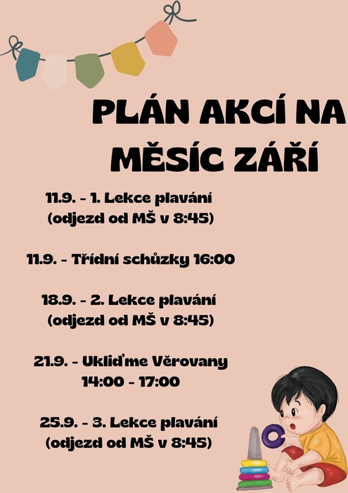 Úvod > Mateřská škola > Aktuality MŠ > Plán akcí na měsíc září