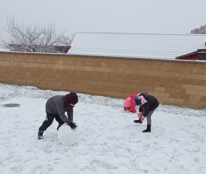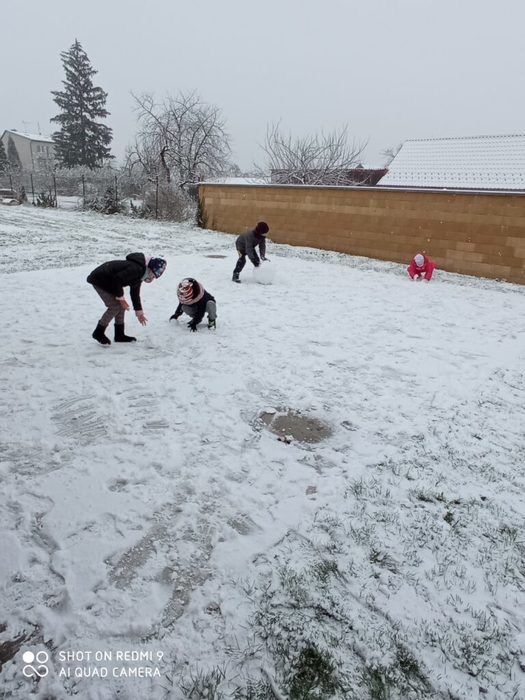 Ješte, že máme ve škole školní dvůr a zahradu. Jak napadne sníh, můžeme rychle vyběhnout a pořádně si jej užít, abychom v budoucnu mohli svým vnoučatům co vypravovat.